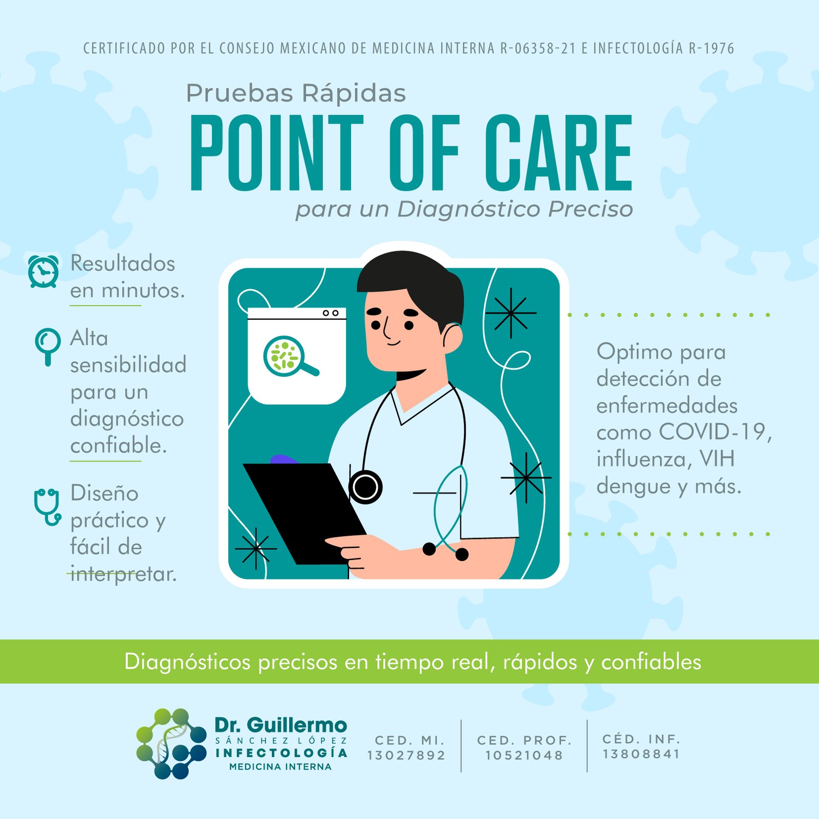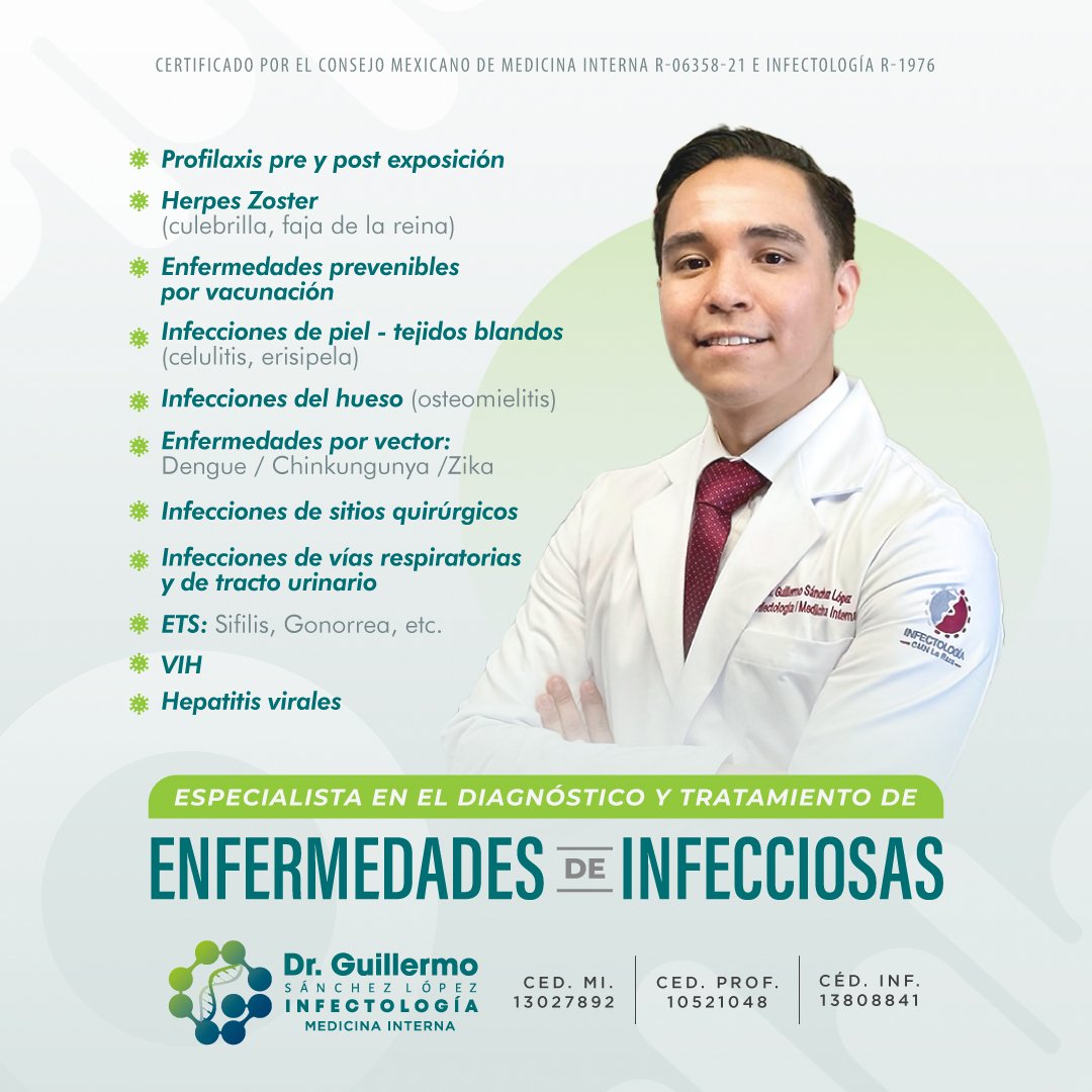 Especialista en Medicina Interna. Subespecialista en Enfermedades Infecciosas.